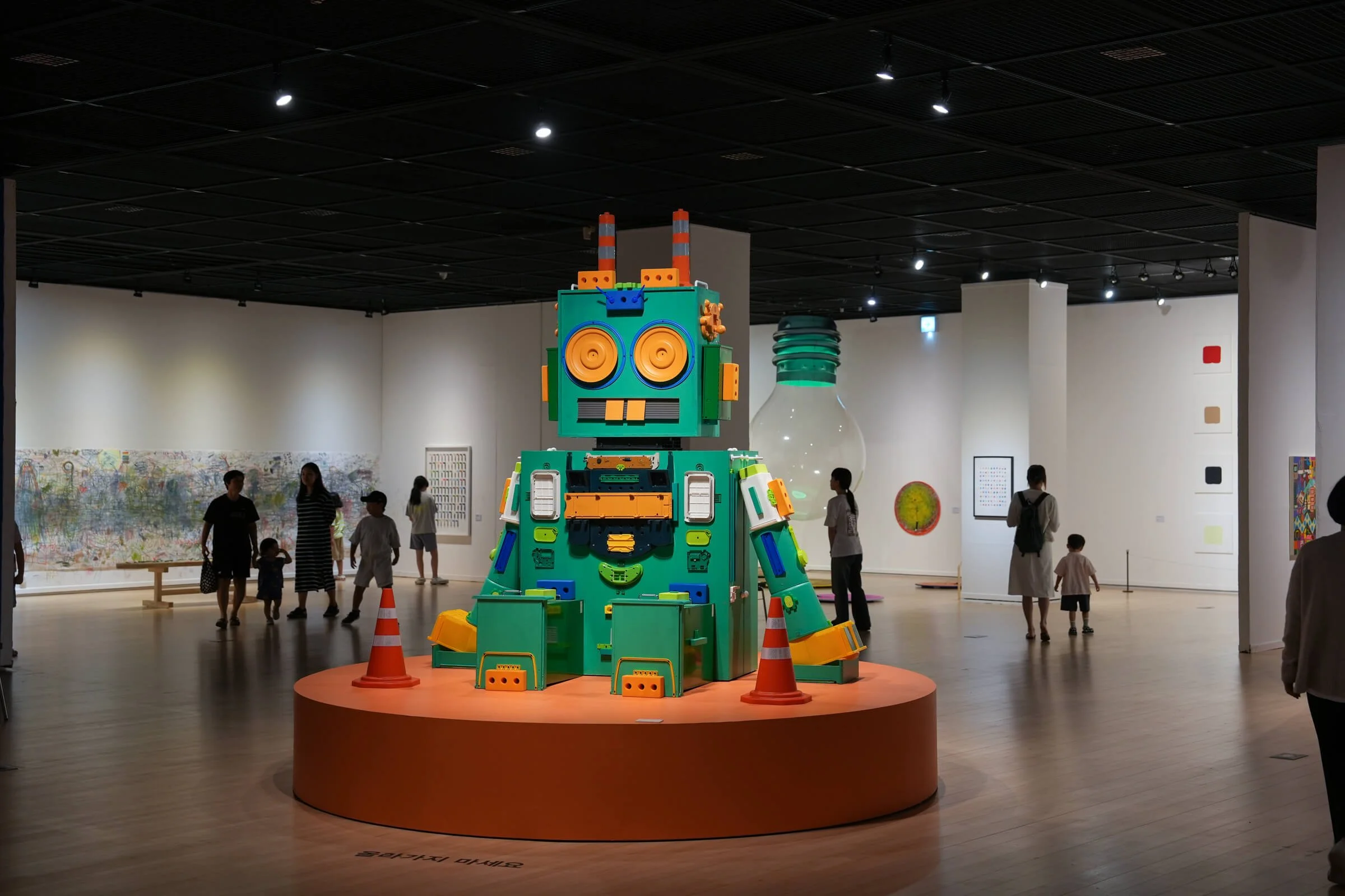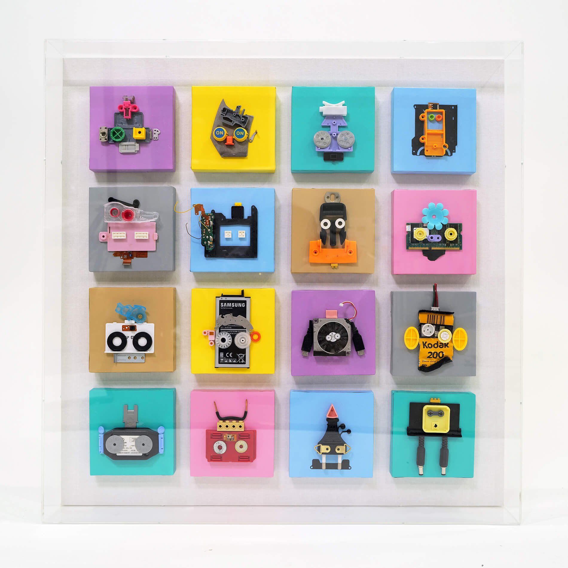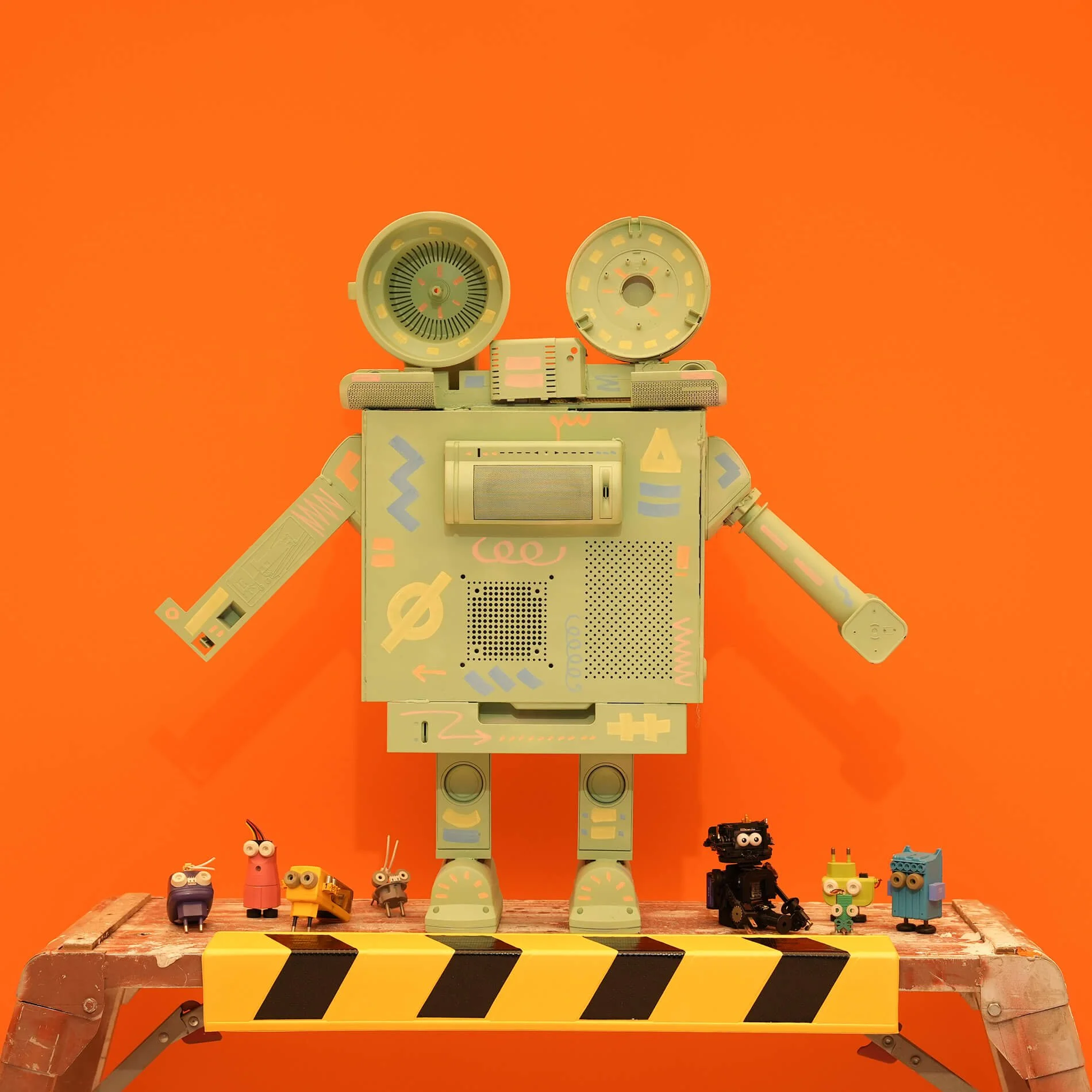 폐가전 부품들이 정교한 로봇의 형태로 구체화되었던 시기의 대표작들을 보여줍니다.