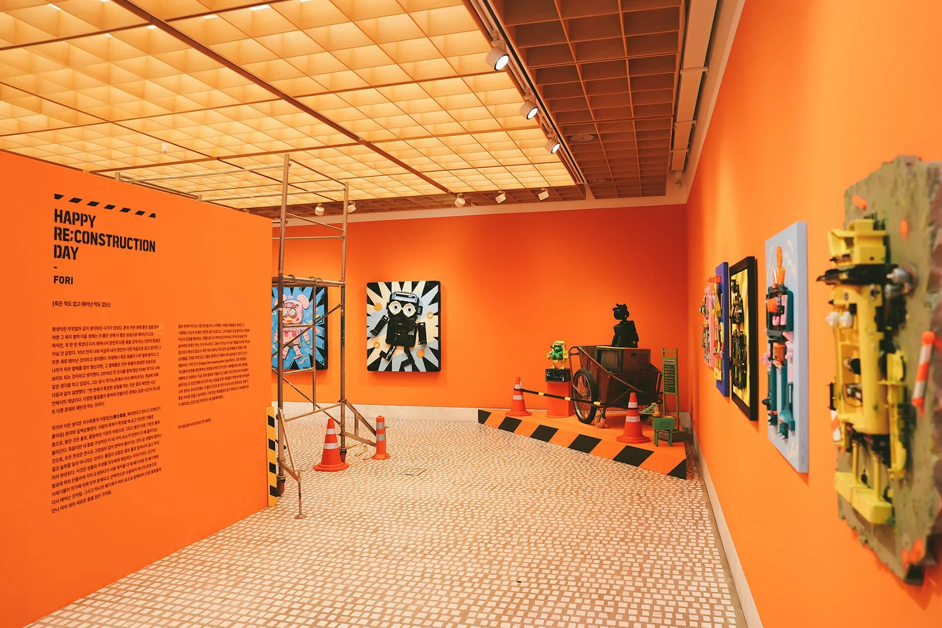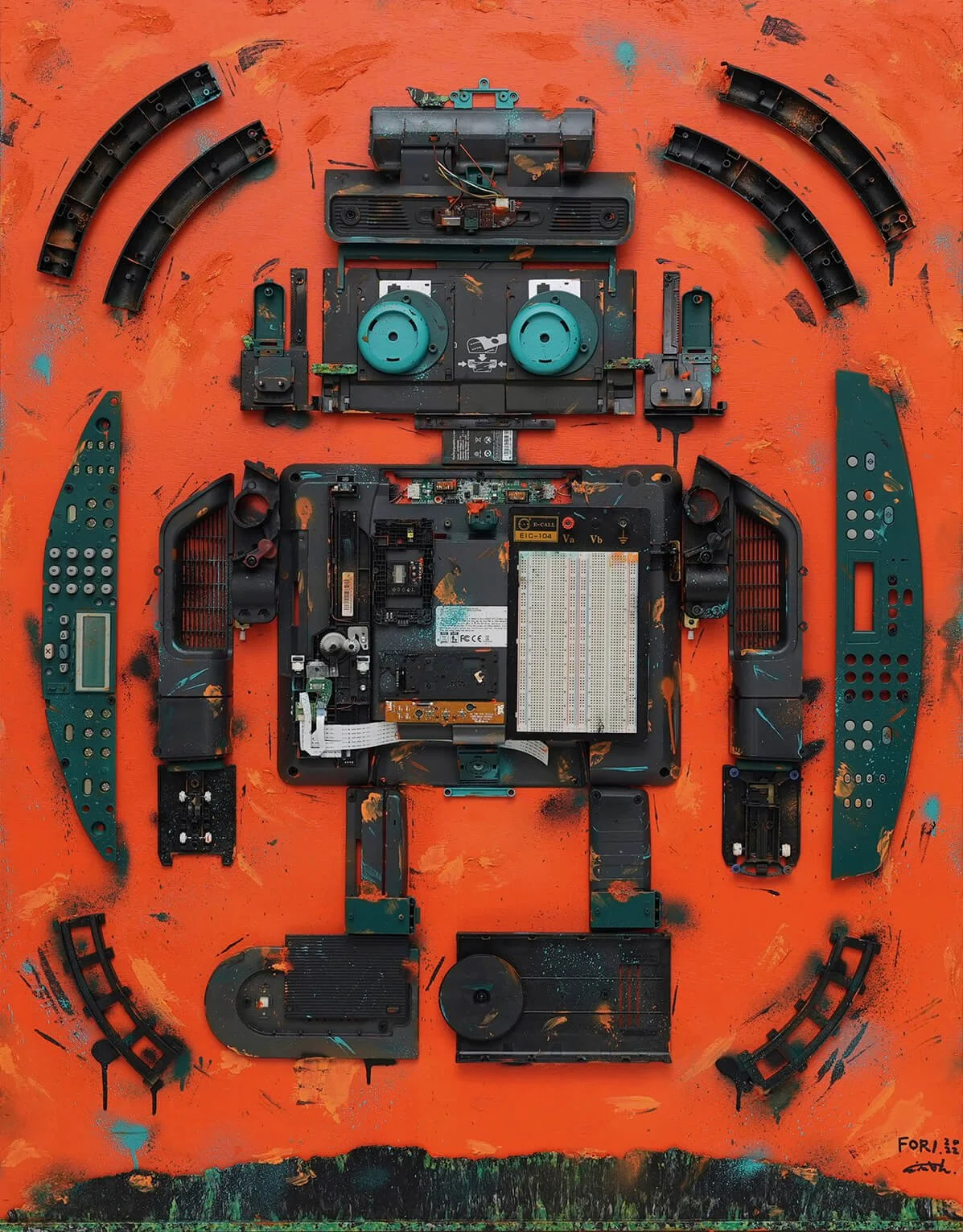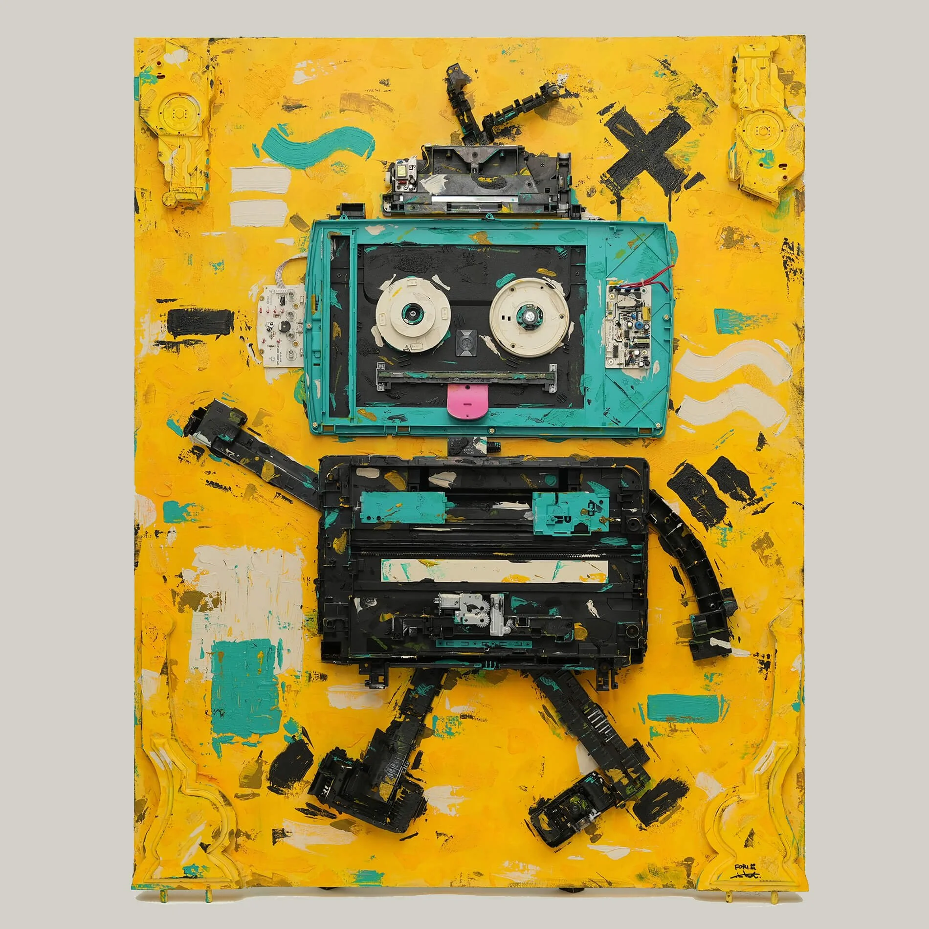 폐가전 부품들이 정교한 로봇의 형태로 구체화되었던 시기의 대표작들을 보여줍니다.